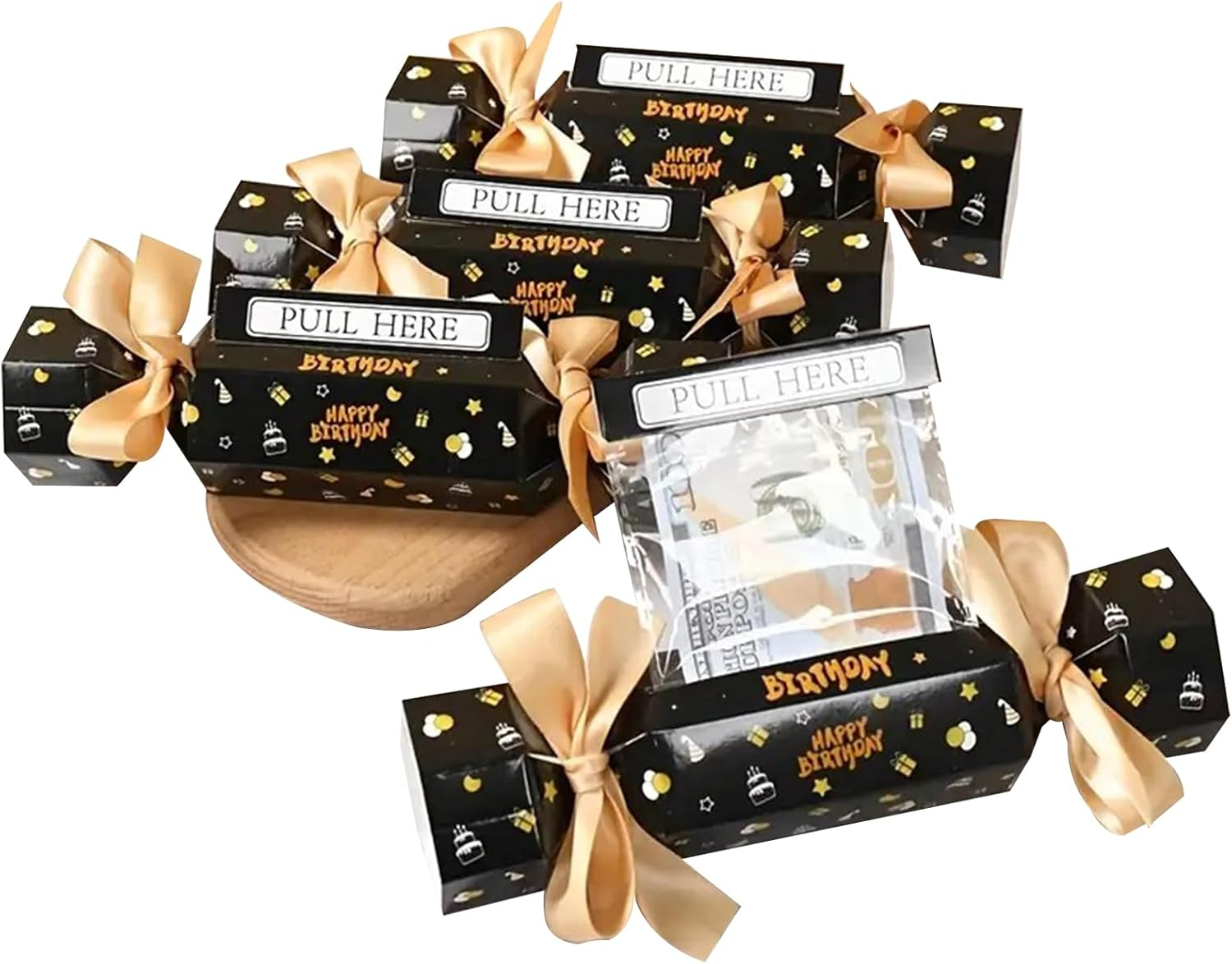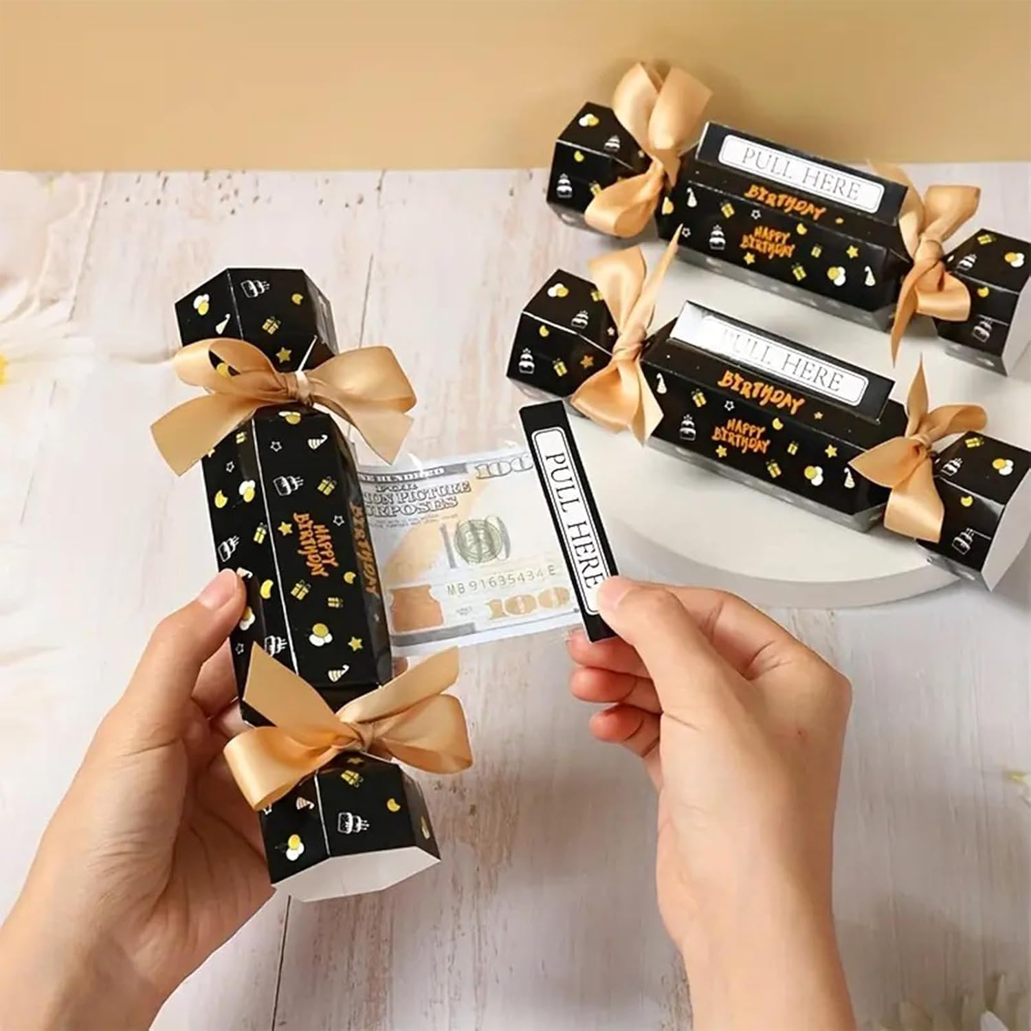 - 【Fine Set】You will receive a set of four birthday cash gift boxes, measuring 19.5 x 5 x 5 cm, in a black and gold colour scheme. They come with 40 transparent bags and pull tabs, and are very easy to assemble, taking only a few minutes. They are perfect as birthday surprise gifts for all ages.