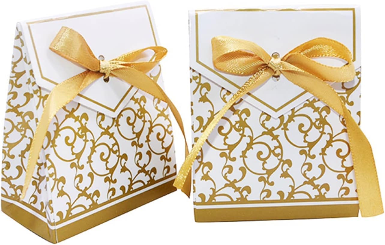 50pcs Wedding Favour Candy Boxes Party Treat Sweet Packaging Gift Boxes with Ribbon Small Treats Bags Creative Gift Bags for Wedding Baby Shower Birthday Christmas Party Favor Supplies